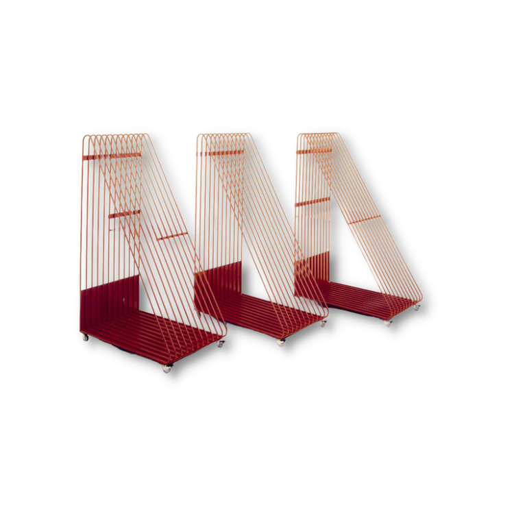 Este bem projetado e robustamente construído carrinho de transporte de ecrãs serigráficos é ideal para uso em departamento de pré-impressão onde múltiplos ecrãs são produzidos e necessitam ser armazenados temporariamente ou movidos com segurança e rapidez.
